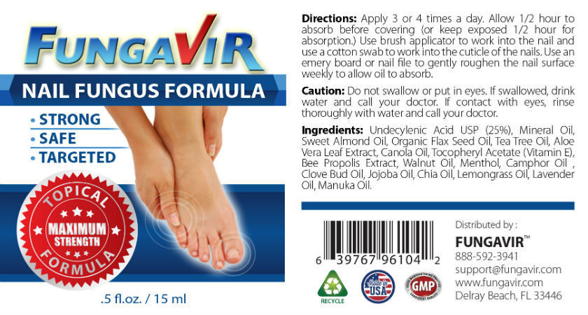 The proprietary formula developed by Fungavir™ takes about 3-4 weeks for you to start seeing its effects. But be patient, it takes about 3-6 months to totally get rid of nail fungus and for new healthy nails to grow and replace the old infected nails. Of course how long it takes to get rid of nail fungus depends on each individual condition. Daily treatment of Fungavir™ is required to not only eliminate the nail fungus, but also to grow healthy nails in place of the infected ones. Please use Fungavir™ at least twice a day, and allow it to absorb into the nail for 1/2 hour.